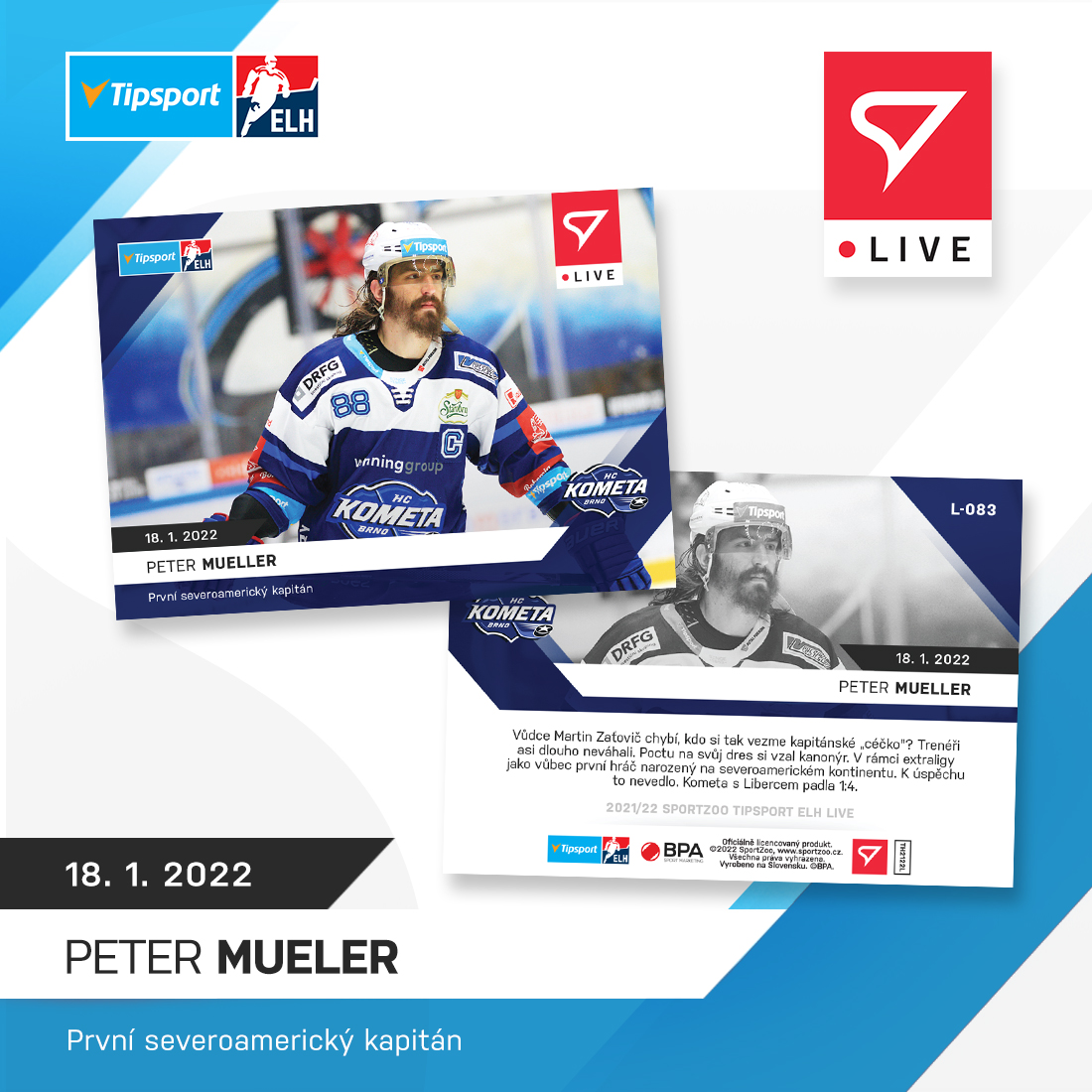 21-22 Tipsport Extraliga - Peter MUELLER č. L-083 x/61Skladem100,00 Kč/ ks82,64 Kč bez DPH